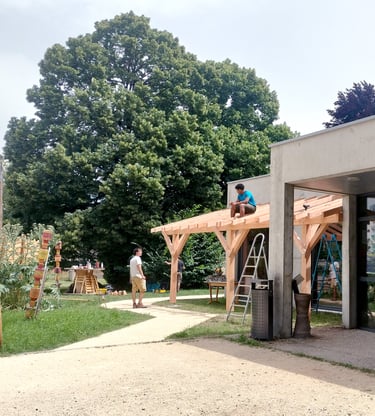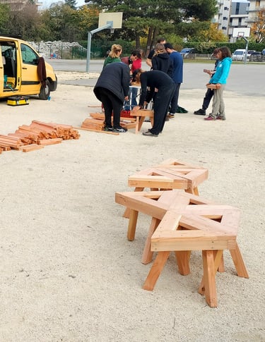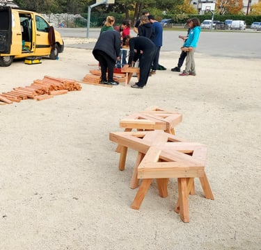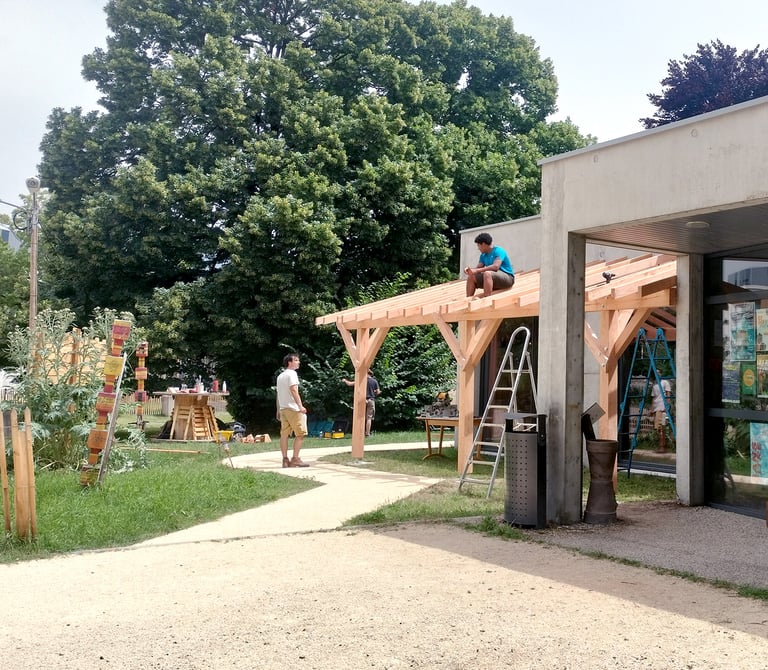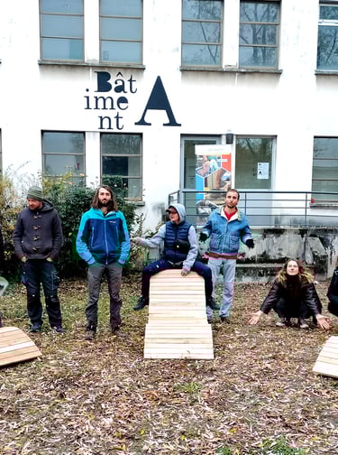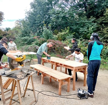 [EN] The CIMME association is part of the Ecoles de la Transition Écologique (ETRE) network, and is developing courses to enable people to take action and train for jobs in the ecological transition. Its workshop are aimed primarily at young people aged 16 to 30 who have dropped out of school or are in the process of finding work. Atelier Hors Formes is involved in supervising woodworking workshops. Participants are introduced to technical drawing, spatial visualisation, carpenter's tools, materials and a wide range of construction techniques. The emphasis is on learning by doing.