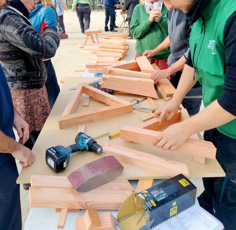 [FR] L'association CIMME fait partie du réseau des Ecoles de la Transition Écologique (ETRE) et développe des parcours de formation pour agir et se former aux métiers de la transition écologique. Ses formations s'adressent en priorité aux jeunes de 16 à 30 ans en décrochage scolaire ou en insertion professionnelle. Atelier Hors Formes intervient en encadrant des ateliers sur les métiers du bois. Les participant.es sont initié.es au dessin technique, à la visualisation dans l'espace, à l'outillage de la menuiserie et de la charpente, aux matériaux et à des techniques de construction multiples. L'apprentissage par le faire est privilégié.