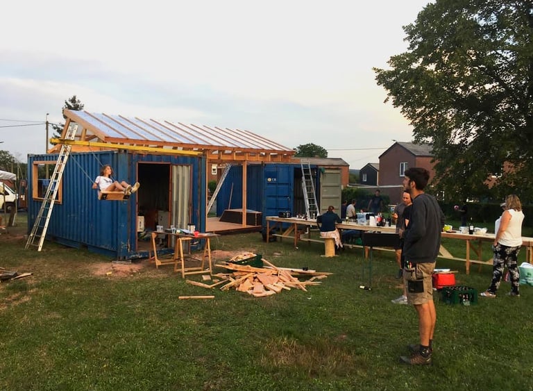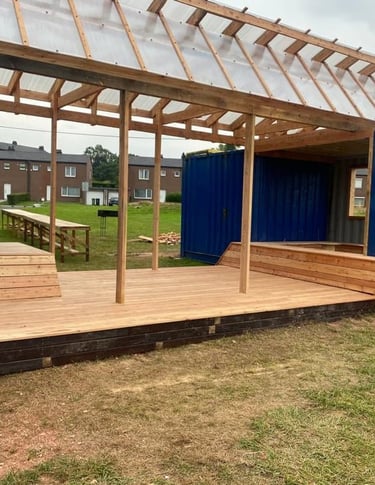 [EN] At Les Fagnes, a social district in Engis haut, a children's council has been launched in the school. The children decided to transform the plain and bring it to life. The Frères Poulets collective came up with the idea of an in situ residency lasting a few weeks to design and build their project together. We had the pleasure of taking part in this project, where everything was invented and created on the spot. This time, there were no plans drawn up in advance, just instant creation!