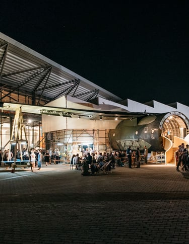 For the three editions of the project, we took part in the construction of three different pavilions and stages, each time using the same elements - parts of aircraft and wooden structural elements - to create new configurations and offer new possibilities for use by the public and artists.