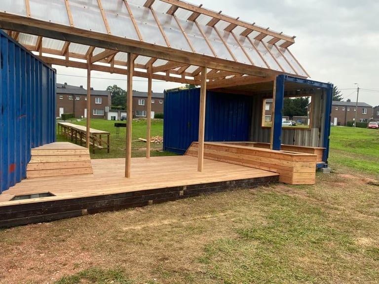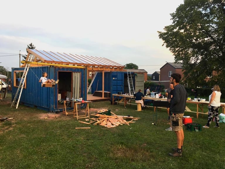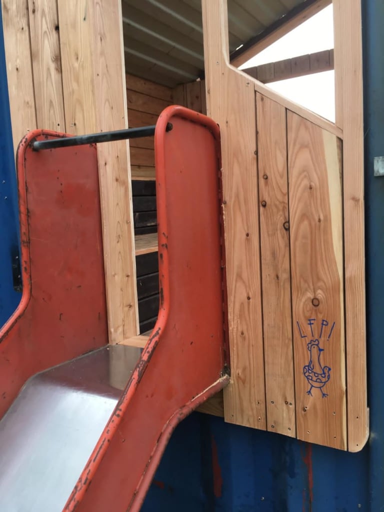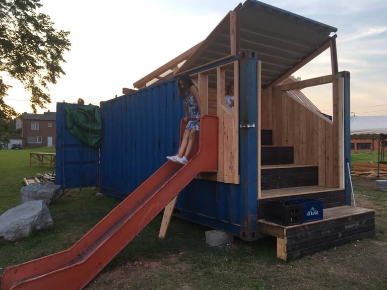 Aux Fagnes, un quartier social d'Engis haut, un conseil municipal des enfants a été lancé dans l'école. Les enfants ont décidé de transformer la plaine et de lui donner vie. Le collectif les Frères Poulets a imaginé une résidence in situ de quelques semaines pour concevoir et construire ensemble leur projet. Nous avons eu le plaisir de participer à ce chantier où tout a été inventé et créé sur place. Cette fois-ci, pas de plan dessiné en avance, la place est laissée à la création instantanée!