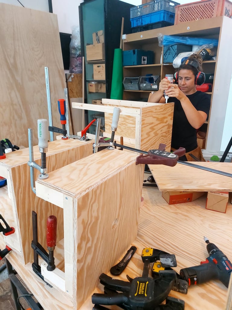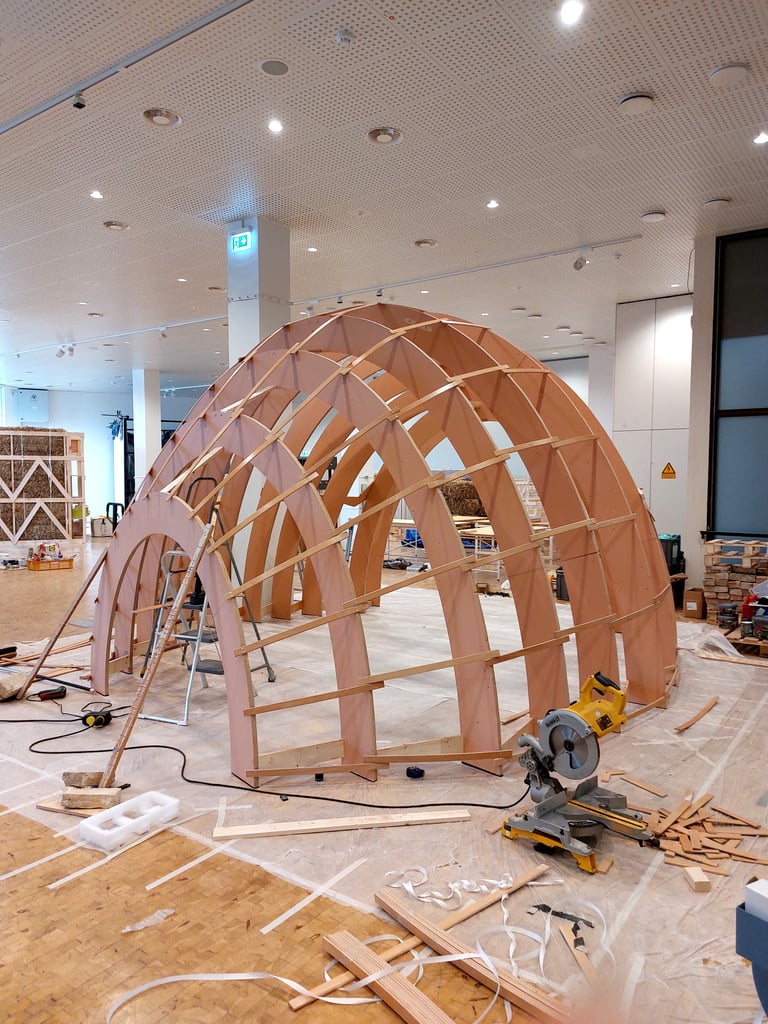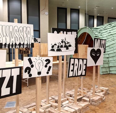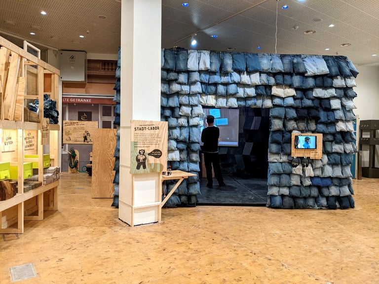 Green Planet Berlin est un “laboratoire d’idées” imaginé pour le jeune public - pour qu’il puisse réfléchir à des solutions à apporter pour vivre dans des villes plus vertes et plus saines. Dans ce cadre, nous avons construit de nombreuses stations avec du bois, du MDF de réemploi, d’anciens frigos, des journaux, des bottes de pailles enduites de terre, d’anciens jeans, de la terre cuite et un compost.
