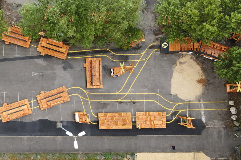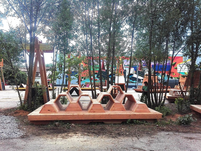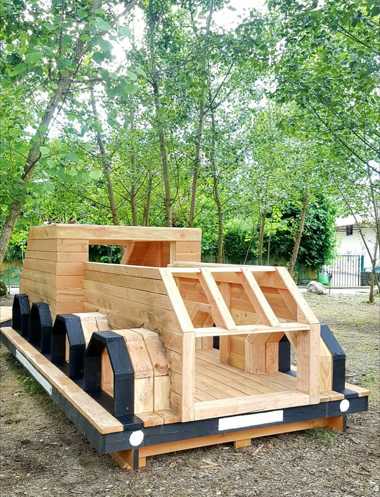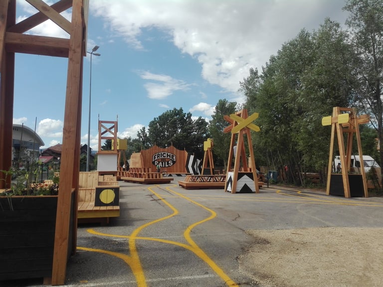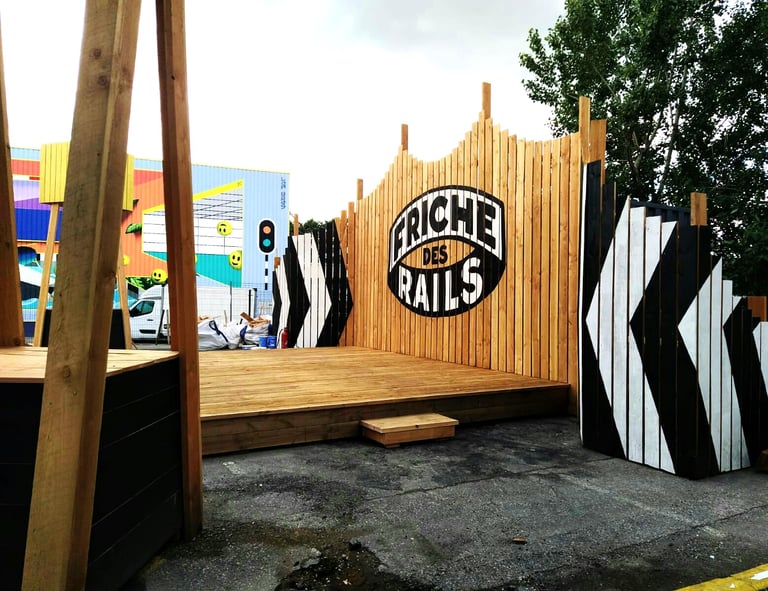 A proximité du cœur de la ville d'Annecy, se trouve une ancienne friche ferroviaire. Un lieu délaissé mais néanmoins traversé régulièrement par les habitants pour se rendre d'un point à un autre de la ville. Le collectif Bruit du Frigo s’est inspiré de la forte identité du site pour y réactiver des usages. C'est à leurs côtés qu'Atelier Hors Formes a participé à la construction de divers mobiliers urbains formant une "collection de wagons insolites". Ces installations en bois sont une invitation à se retrouver autour de jeux, de table de pique nique, de plateformes scéniques, de gradins, et laissé place à une appropriation ludique de cet espace.