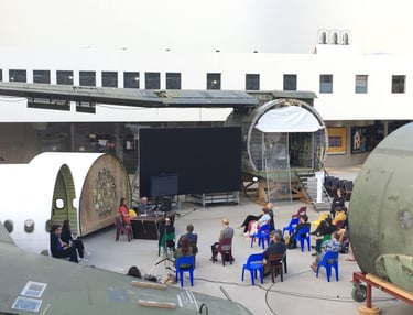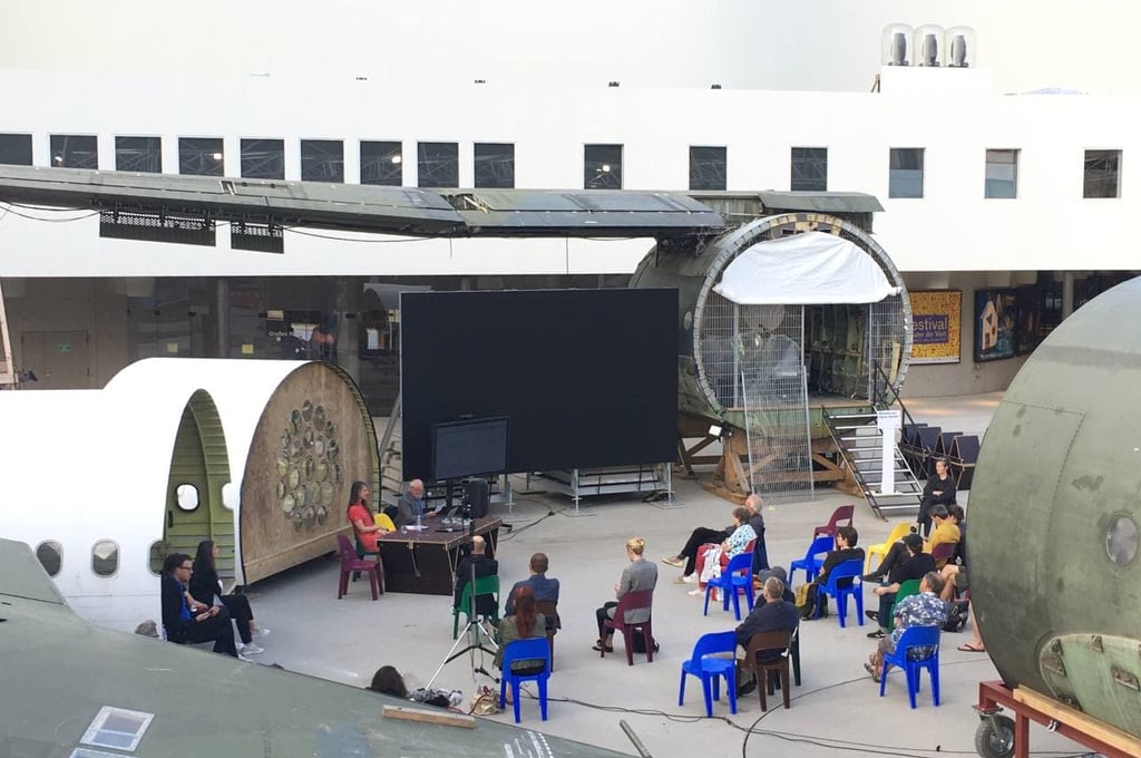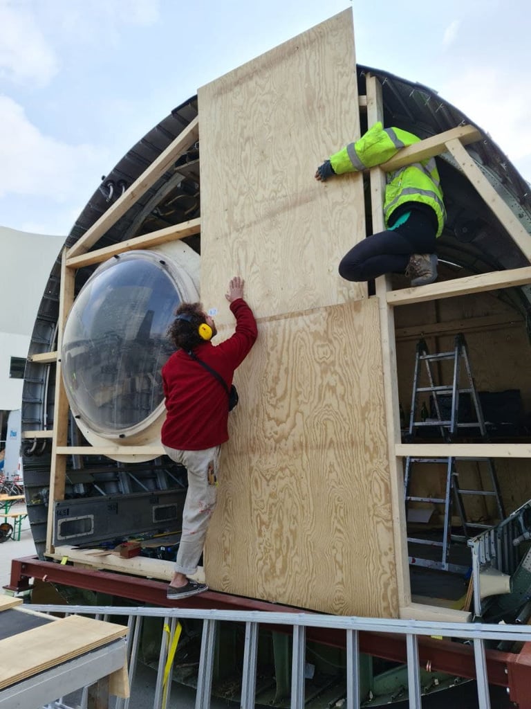 Ainsi, pour les trois éditions du projet, nous avons participé à la construction de trois pavillons et mises en scènes différentes en détournant à chaque fois les mêmes éléments - des parties d'avion et des éléments de structure en bois - pour créer de nouvelles configuration et proposer de nouvelles possibilités d'utilisation par le public et les artistes.