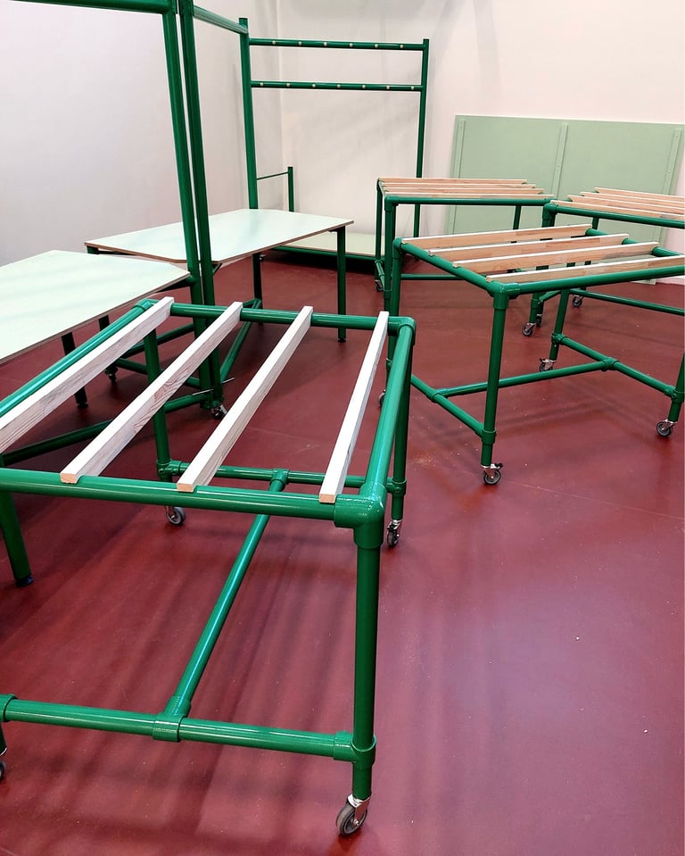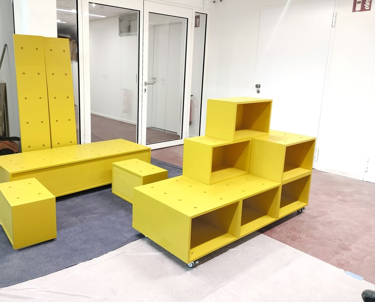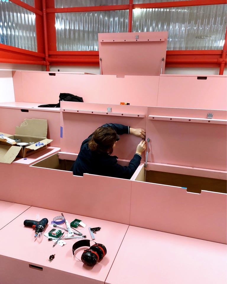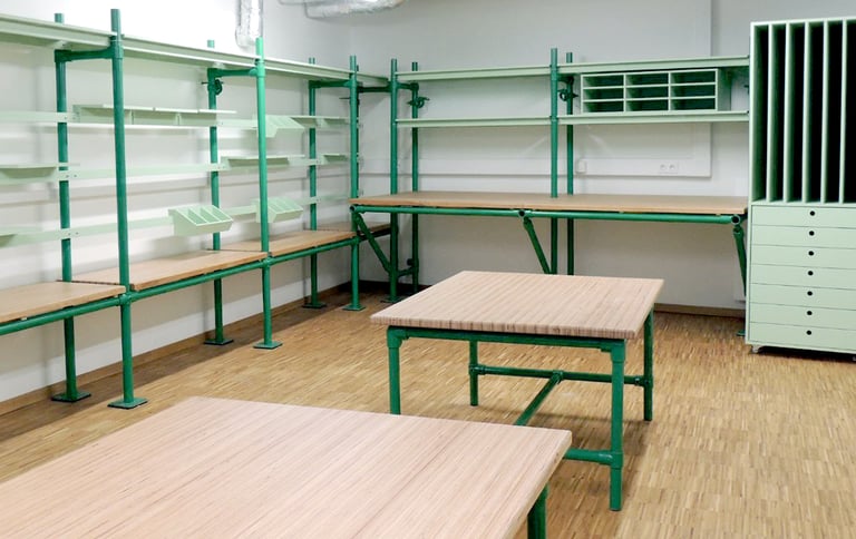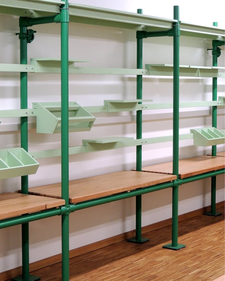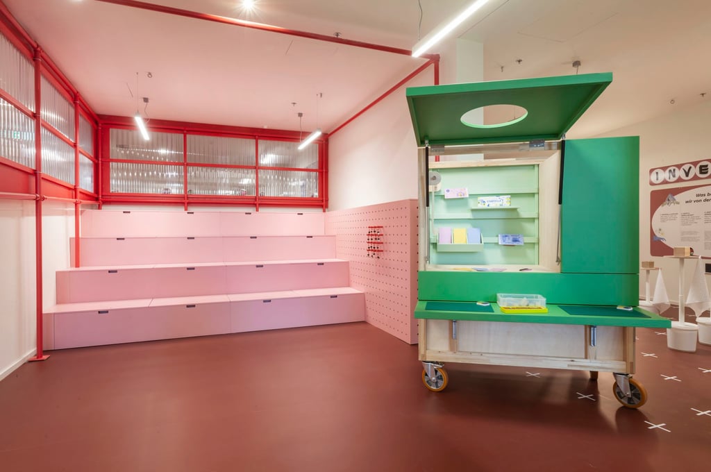 Urbaneo est un projet qui s’est déroulé en trois phases entre 2024 et 2025 pour le Junges Architektur Zentrum (centre d’architecture pour les jeunes) de Hambourg avant son ouverture au public. Le mobilier et la scénographie du musée, imaginé par Stiftung Freizeit, ont été construits par nos soins sur une base d’échafaudages installés au préalable. Deux grands espaces d’atelier, un espace d’entrée avec tribune, une salle d’exposition, un point d’accueil et une boutique ont ainsi été aménagés avec des éléments réalisés en série ou sur-mesure, en fonction des espaces et des usages.